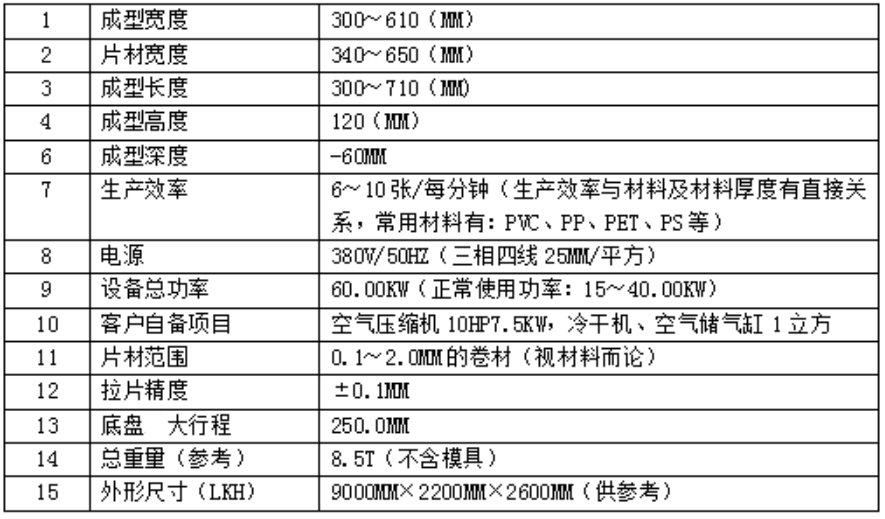 2、用途:適用于HIPS、PS、PP、PVC、PET、ABS等塑料片材的成型,加工高透明、高拉伸、圓型、方型、不規(guī)則、上下雙向拉伸、翻邊產(chǎn)品,各種盒、碟、托盤、碗、蓋、等各個領(lǐng)域的包裝制品。